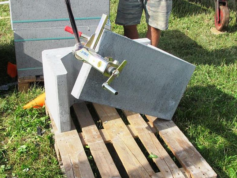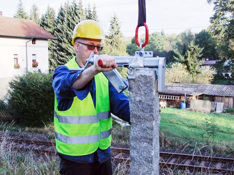 Handlicher Stelensetzer für Beton- und Granitstelen. Durch beidseitige