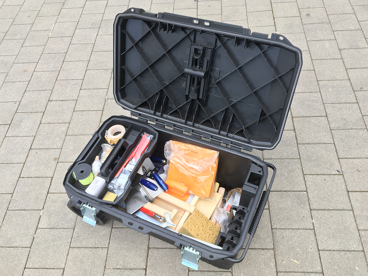 Maurer-Werkzeugkiste komplett Kunststoff gefüllt mit 35 Werkzeugen 440114100