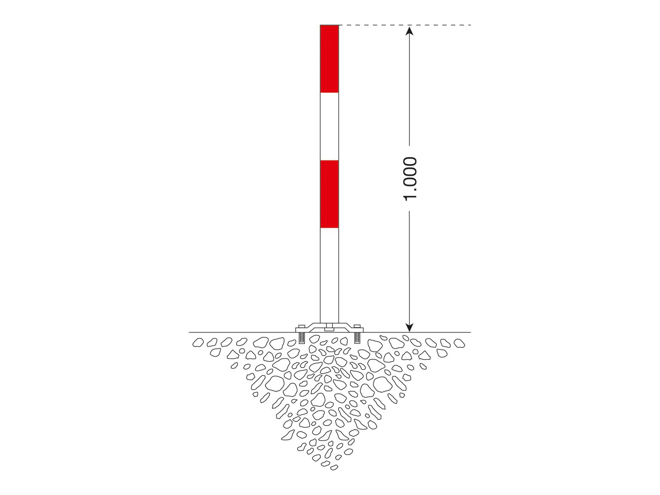 D 60 mm, Höhe 100 cm, mit Spezialbodenplatte zum aufdübeln
